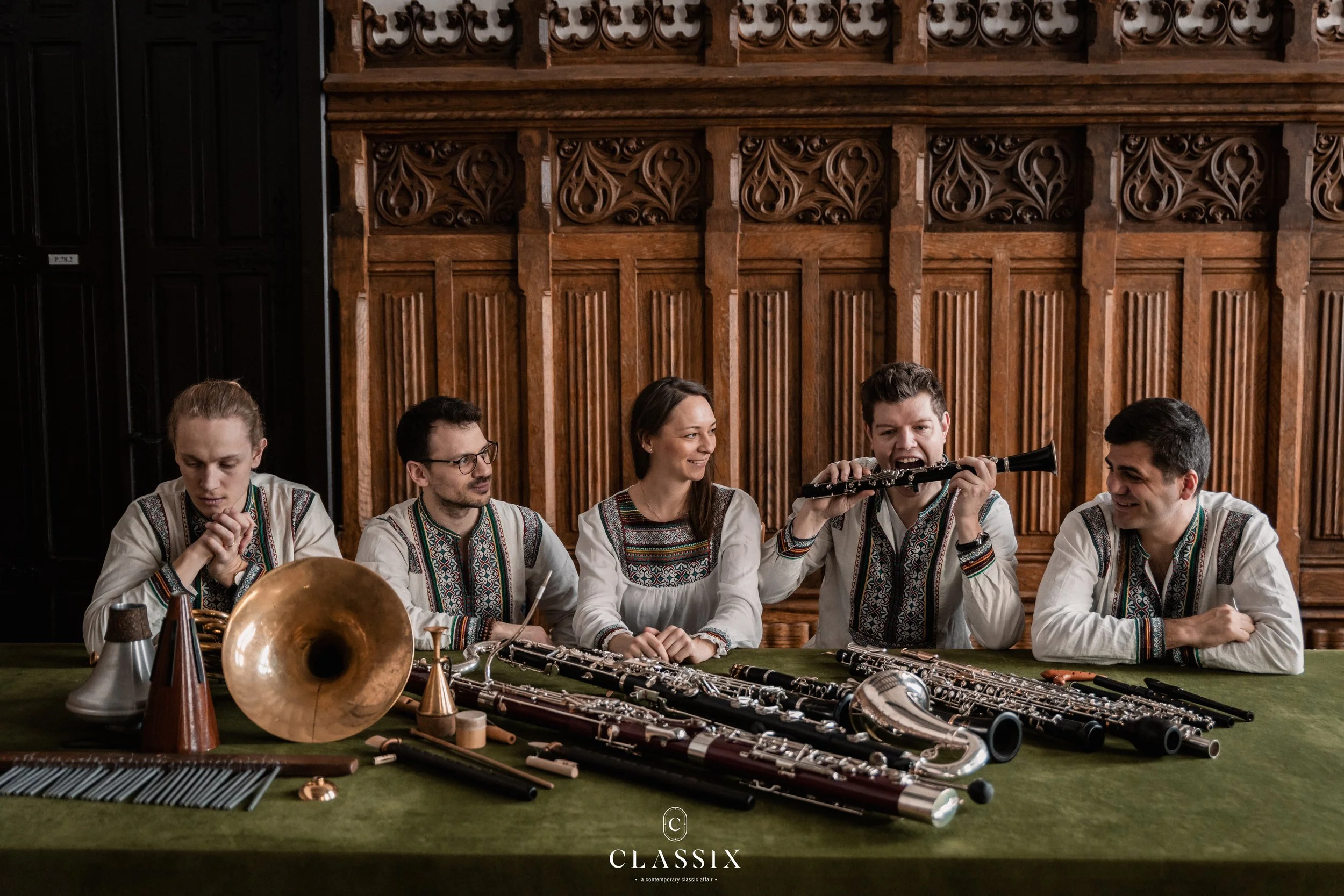 Den København-baserede blæserkvintet V Coloris er et sammensmelt af forskellige kulturer og nationaliteter, hvilket inspirerede dem til at vælge et navn, der lægger vægt på farverigdom. Folkemusik og ny musik er de to hovedårer i V Coloris’ kunstneriske virke. De laver flittigt egne musikalske arrangementer af værker med tydelige folkemusikalske rødder, og de samarbejder regelmæssigt med fremtrædende komponister, såsom Doina Rotaru, Karin Rehnqvist, Hans Abrahamsen, Mette Nielsen og Lil Lacy.